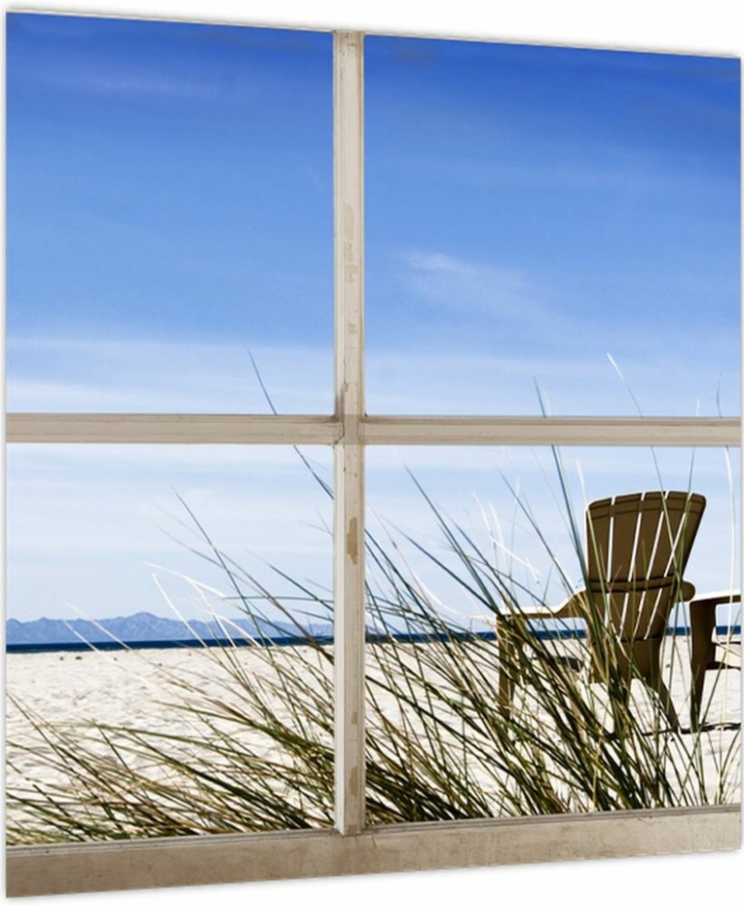 Obraz - Okno v výhledem na pláž, jednodílný 40x40 cm
