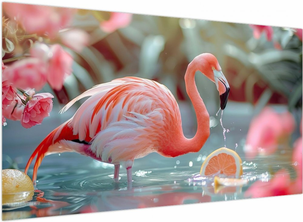Obraz - Plameňák v jezírku, jednodílný 120x70 cm