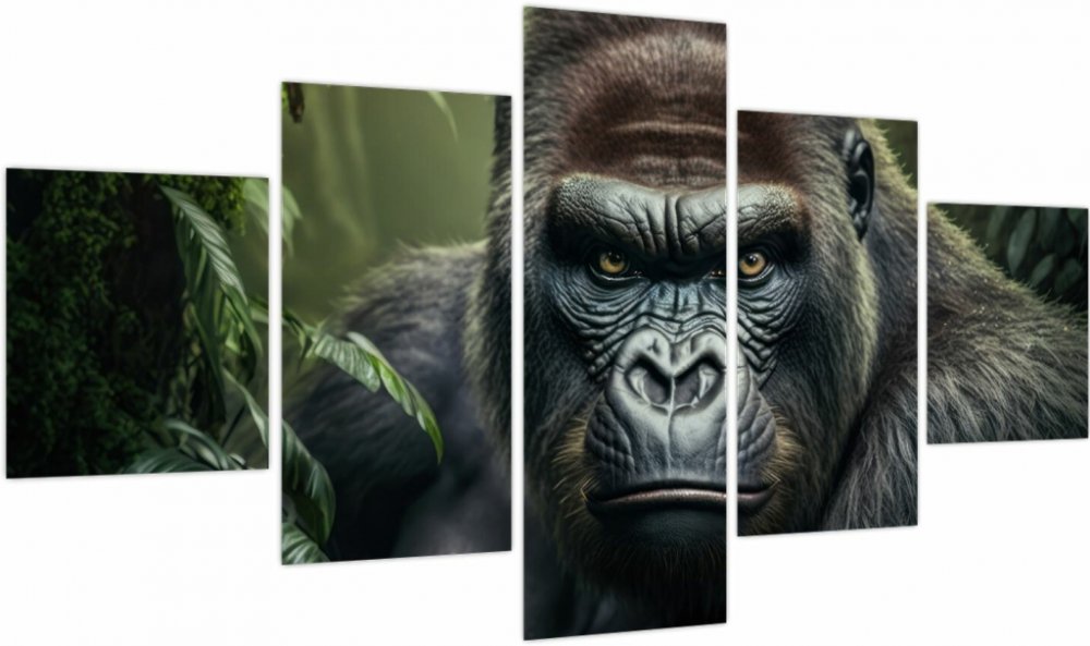Obraz - Portrét gorily, pětidílný 125x70 cm