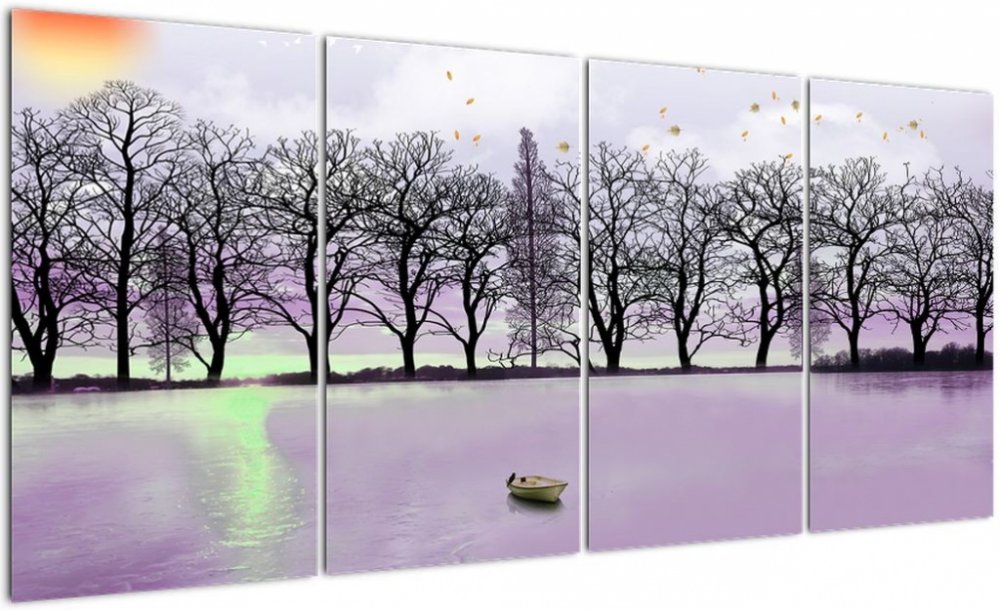 Obraz - Pramice na jezeře, Čtyřdílný 160x80 cm