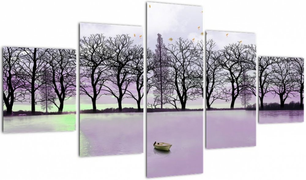 Obraz - Pramice na jezeře, pětidílný 125x70 cm