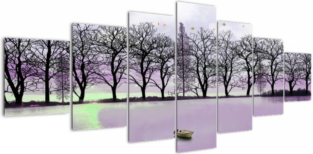 Obraz - Pramice na jezeře, sedmidílný 210x100 cm