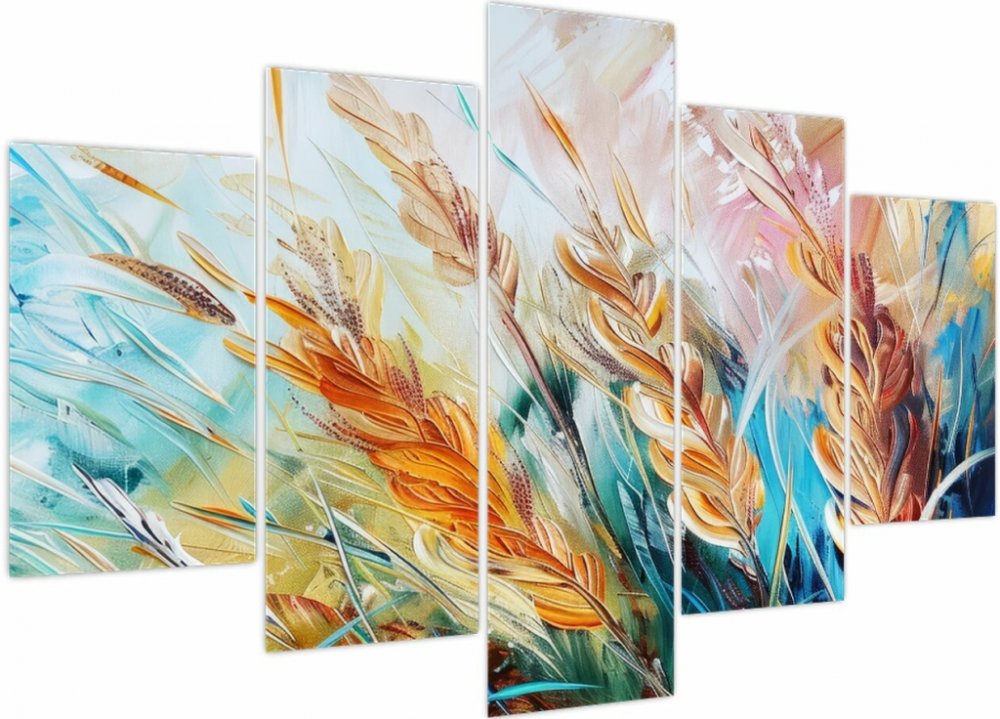 Obraz - Pšenice, abstrakce, pětidílný 150x105 cm