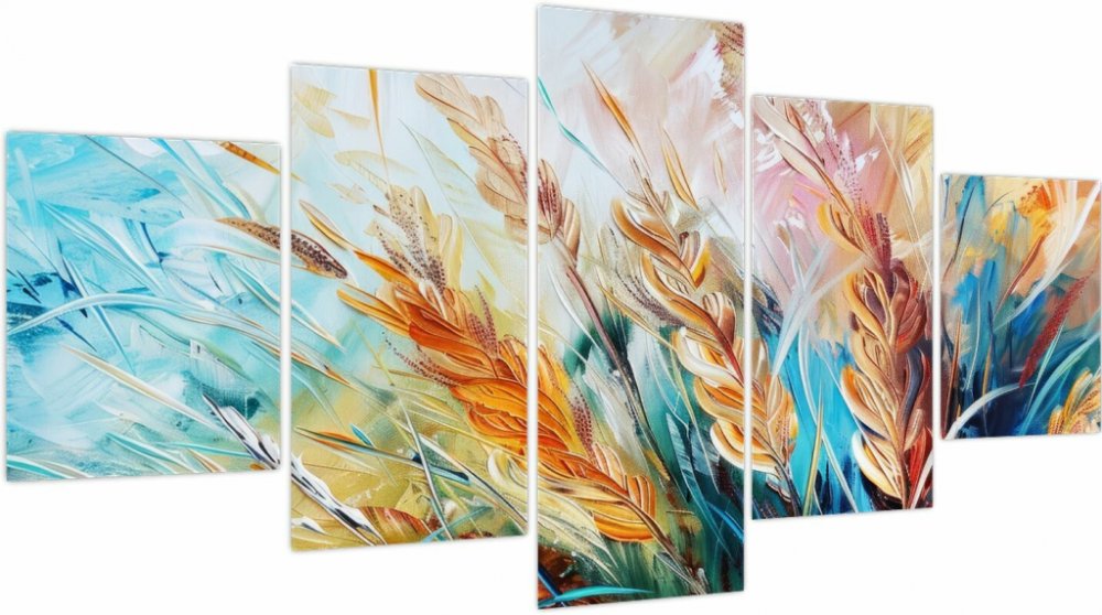 Obraz - Pšenice, abstrakce, pětidílný 150x80 cm