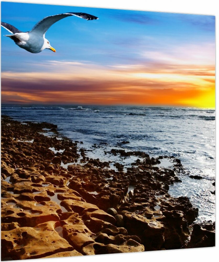 Obraz - Racek letící nad pobrežím, jednodílný 40x40 cm