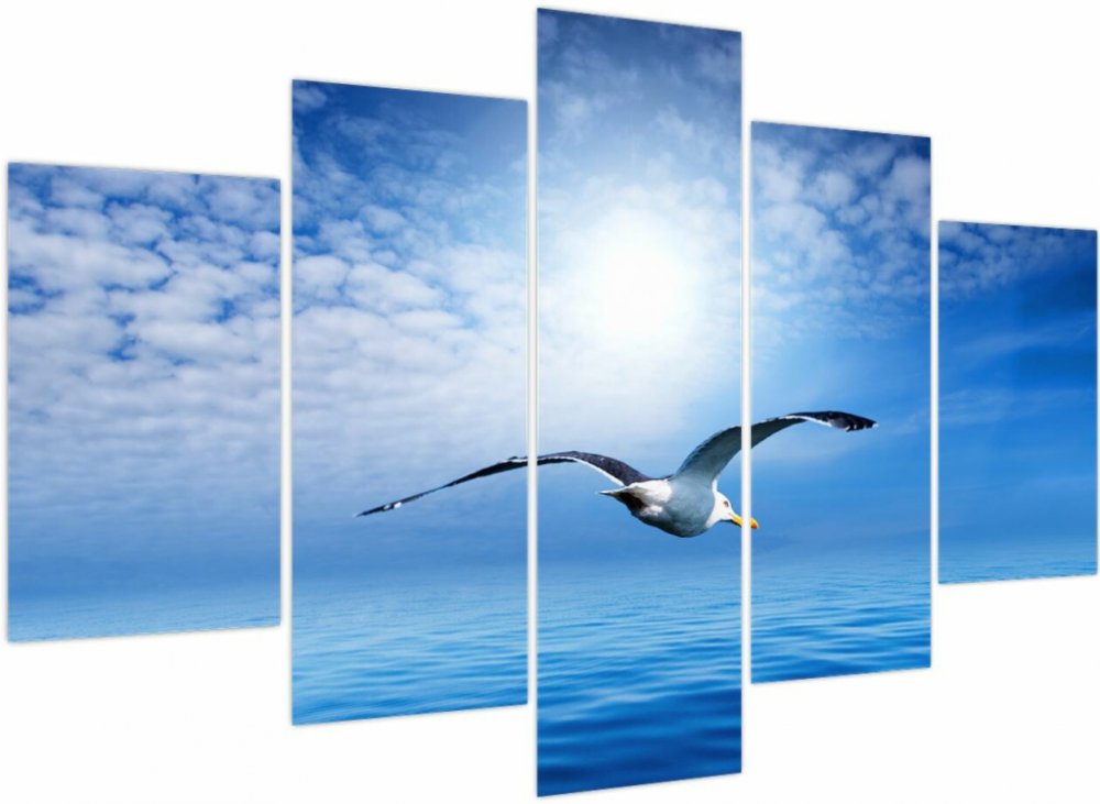 Obraz - Racek nad mořem, pětidílný 150x105 cm