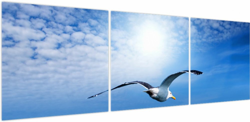 Obraz - Racek nad mořem, třídílný 150x50 cm