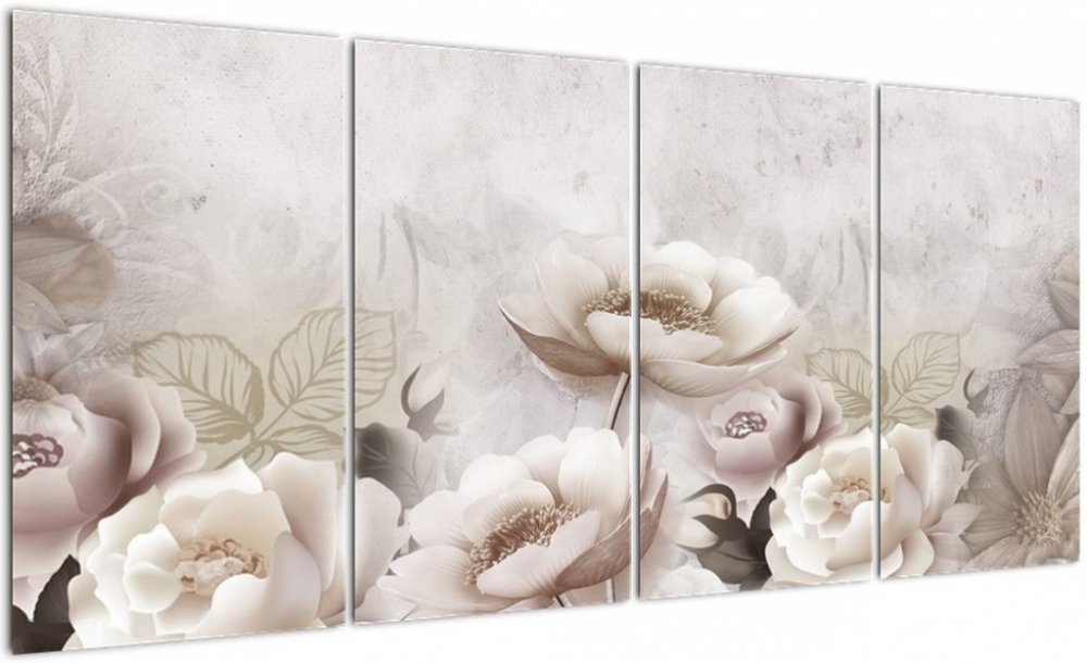 Obraz - Růžové keře, Čtyřdílný 160x80 cm