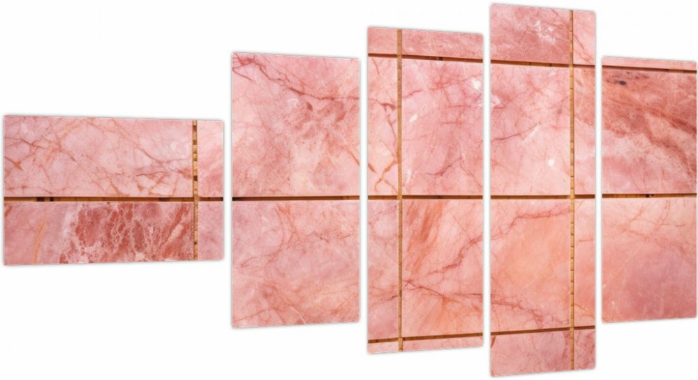 Obraz - Růžové, mramorované dlaždice, pětidílný 110x60 cm