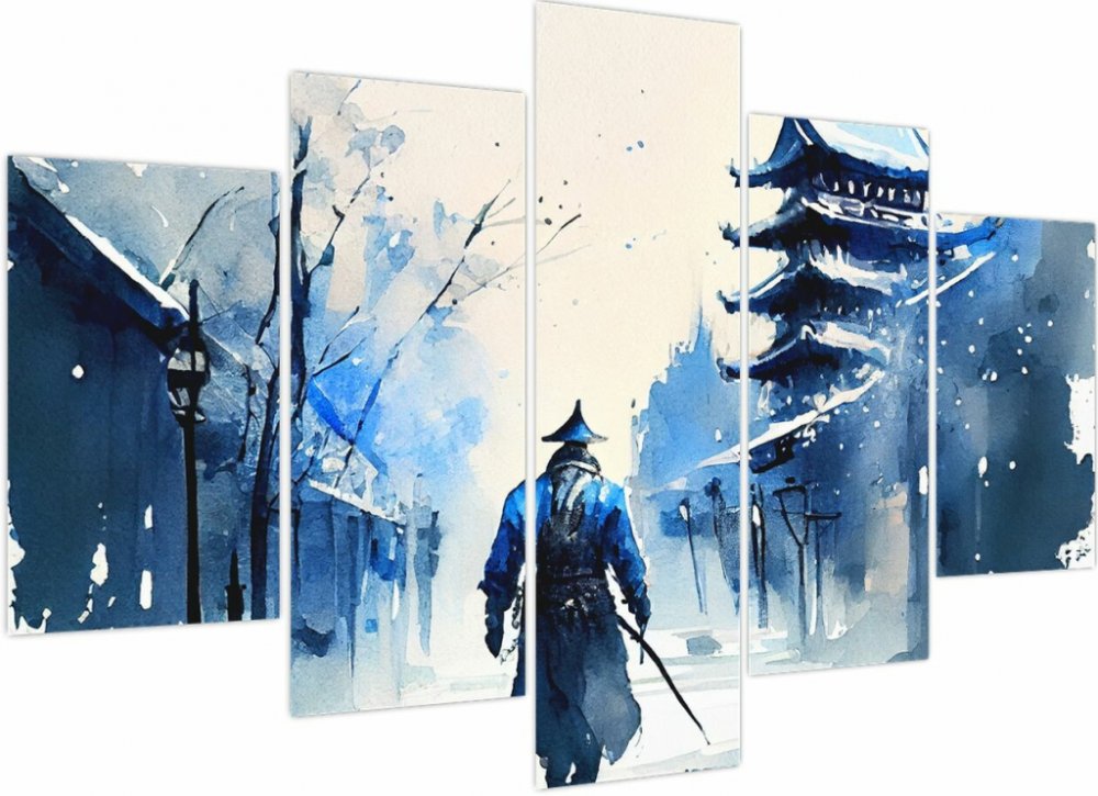 Obraz - Samuraj, aquarel, pětidílný 150x105 cm