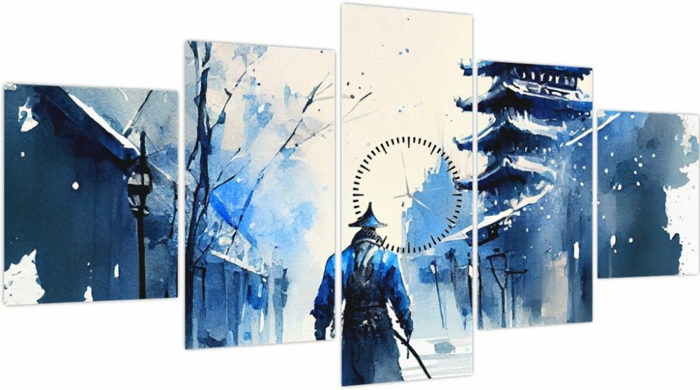 Obraz - Samuraj, aquarel (s hodinami), pětidílný 150x80 cm s hodinami