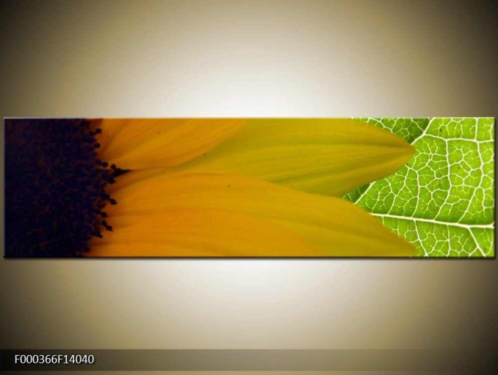 Obraz Slunečnice - detail, vhodný pro moderní interiér.Obraz tisknutý na kvalitním malířském plátně o velikosti 140x40cm, tlouška rámu je 2cm.Plátno je již natažené na blindrámu přetaženo až na zadní stranu, díky tomu jsou i boční strany obrazu barevné podle motivu předlohy, obraz obdržíte již hotový a připravený k pověšení. Obraz vyrobíme do 14dnů na základě Vaši objednávky