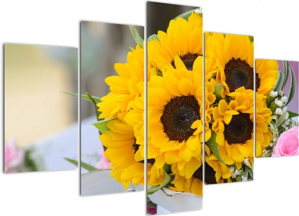 Obraz svatební kytice ze slunečnic, pětidílný 150x105 cm