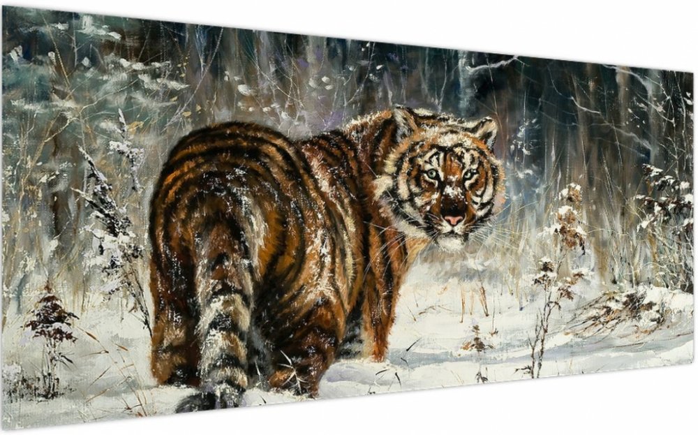 Obraz - Tygr v zasněženém lese, olejomalba, jednodílný 200x100 cm