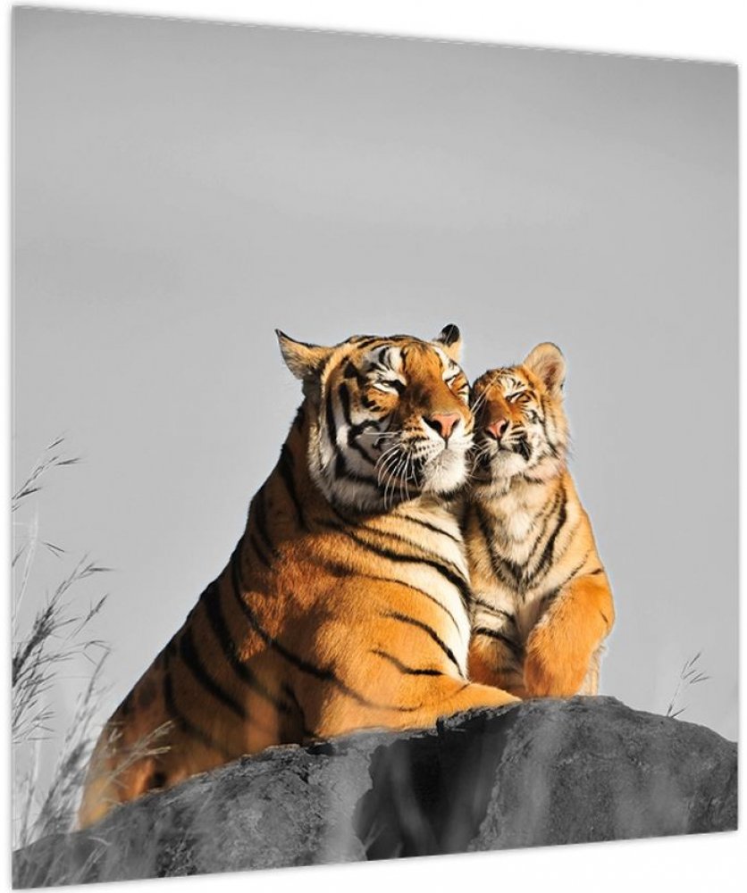 Obraz - Tygřice a její mládě, černobílá varianta, jednodílný 50x50 cm