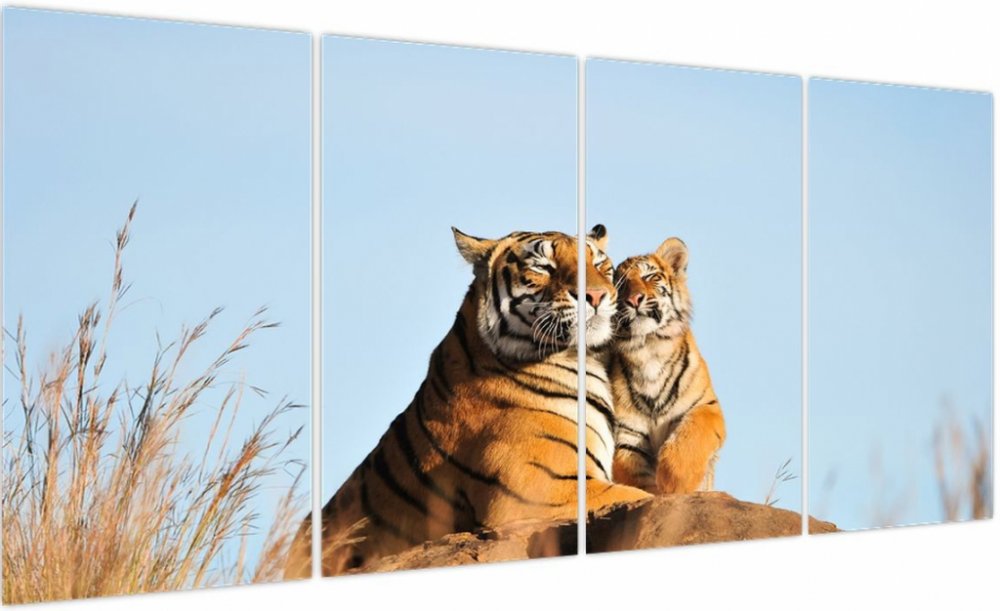 Obraz - Tygřice a její mládě, Čtyřdílný 160x80 cm