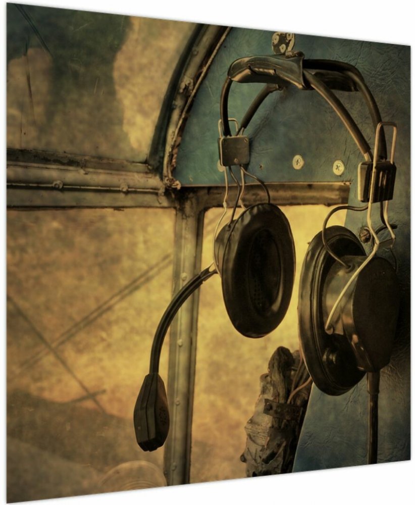 Obraz - Vintage letecká sluchátka, jednodílný 70x70 cm