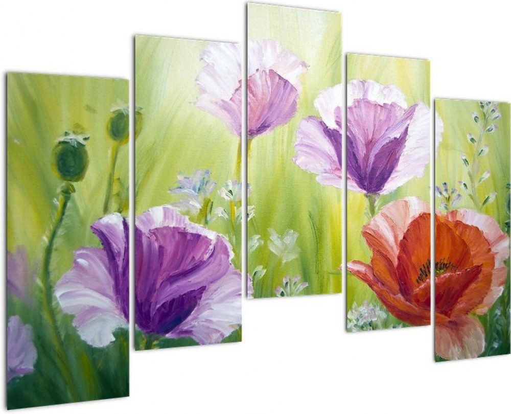 Obraz - Vlčí máky, pětidílný 125x90 cm