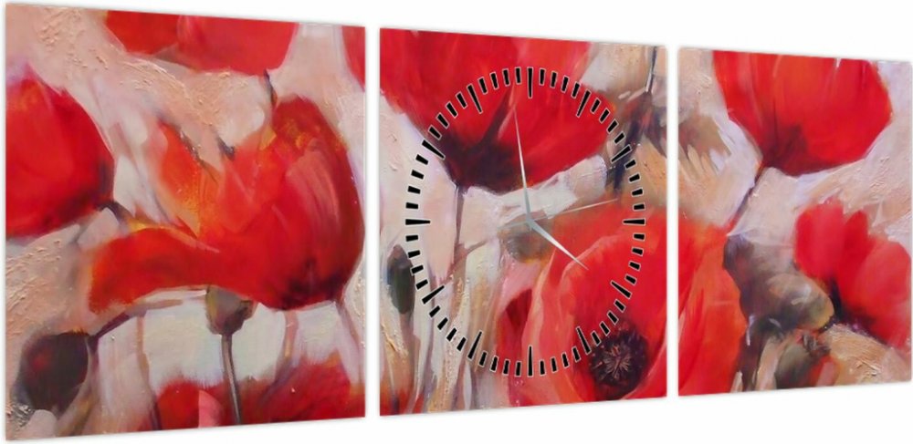 Obraz - Vlčí máky (s hodinami), třídílný 90x30 cm s hodinami