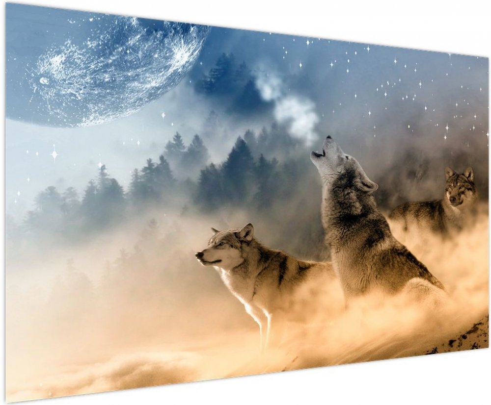 Obraz - vlci vyjící na měsíc, jednodílný 150x100 cm