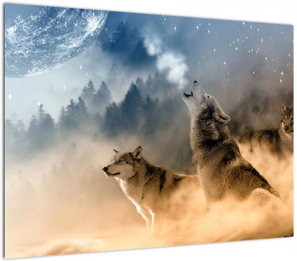 Obraz - vlci vyjící na měsíc, jednodílný 70x50 cm