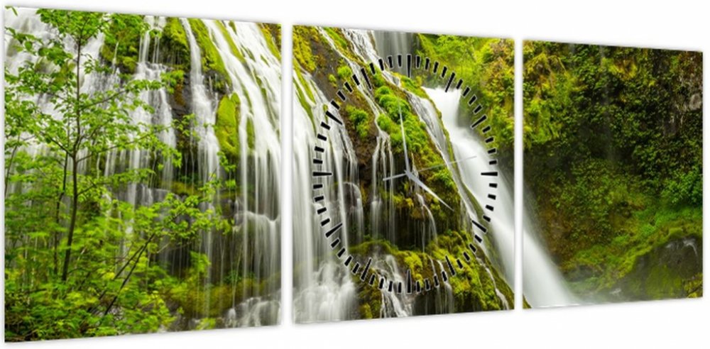 Obraz - Vodopád, Wind River Valley (s hodinami), třídílný 90x30 cm s hodinami