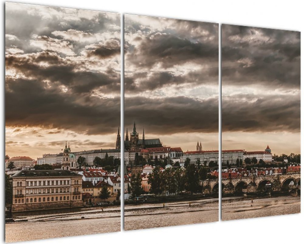 Obraz - zamračená Praha, třídílný 120x80 cm