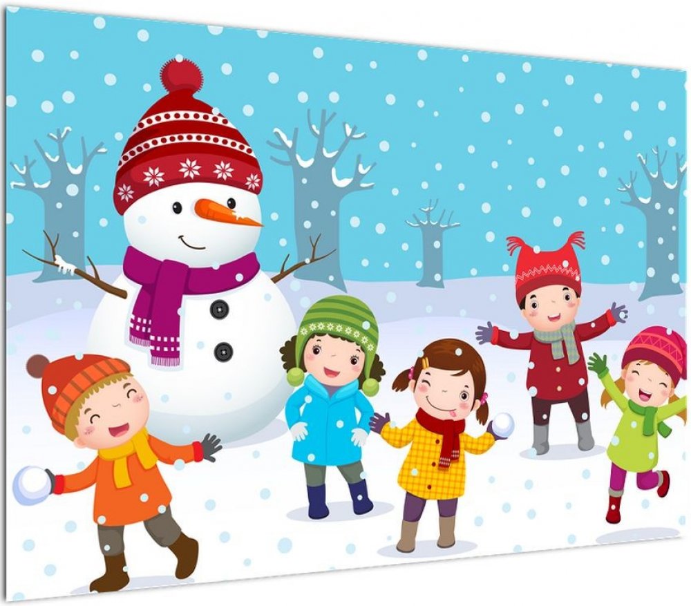 Obraz - Zimní dětské radovánky, jednodílný 100x70 cm