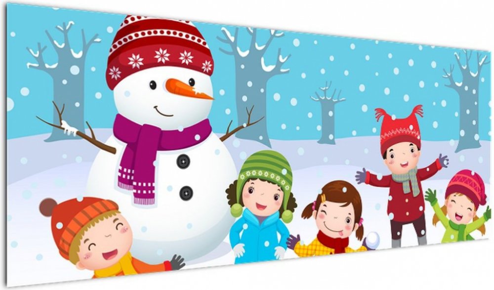 Obraz - Zimní dětské radovánky, jednodílný 145x58 cm