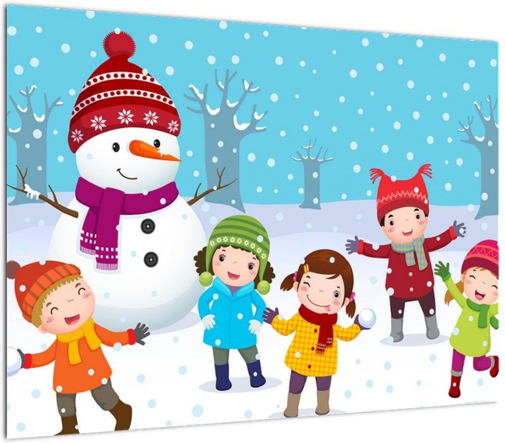 Obraz - Zimní dětské radovánky, jednodílný 70x50 cm