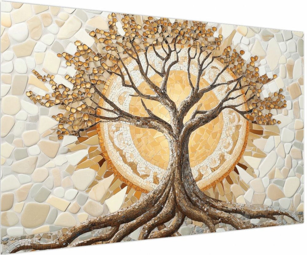 Obraz - Zlatý strom života v mozaice, jednodílný 120x80 cm