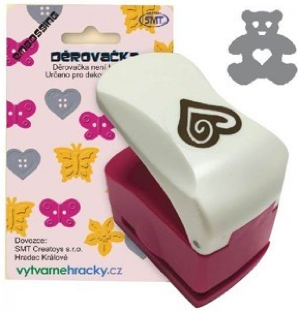 Děrovačka pro výtvarnou tvorbu. Velikost výseku 25 mm. Postup: 1. pracujte s děrovačkou na pevné a rovné ploše. 2. vložte papír vhodné tloušťky - 180-220 g/m2 a zatlačte na páku statickým tlakem. Nikdy ne úderem na páku. 3. po proděravění opatrně vytáhněte zbylý papír. 4. POUŽÍVEJTE POUZE NA PAPÍR. Děrovačky nikdy nepoužívejte na materiály potažené lepící vrstvou (například na samolepicí štít...