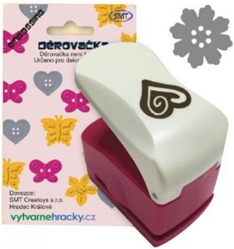Děrovačka pro výtvarnou tvorbu. Velikost výseku 25 mm. Postup: 1. pracujte s děrovačkou na pevné a rovné ploše. 2. vložte papír vhodné tloušťky - 180-220 g/m2 a zatlačte na páku statickým tlakem. Nikdy ne úderem na páku. 3. po proděravění opatrně vytáhněte zbylý papír. 4. POUŽÍVEJTE POUZE NA PAPÍR. Děrovačky nikdy nepoužívejte na materiály potažené lepící vrstvou (například na samolepicí štít...