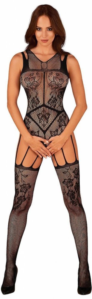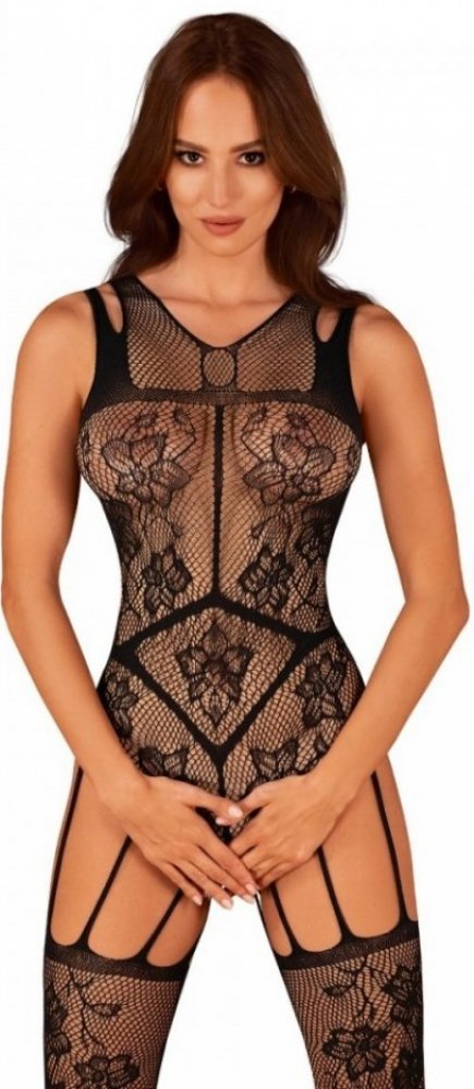 Obsessive Bodystocking F239 s květinovým vzorem Černá