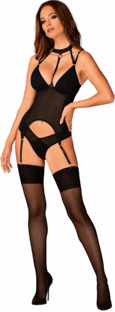 Tento zázračný korzet ukradne (nejen) vaše srdce Dokonale zvýrazněné poprsí, krásně střižené, padnoucí kalhotky. Detaily z růžového zlata, zapínání na drahokamy vzadu u krku a odnímatelný pásek mezi ňadry – všechny tyto prvky se snoubí v naprosto bezchybný svůdný doplněk, přesně tak, jak to máte rádi… Zjistěte více podrobností: - sada obsahuje korzet a kalhotky - košíčky s kosticí - nastavitelné popruhy a podvazkové pásy – pohodlné nošení - choker zapínaný vzadu na bižuterní řetízek - choker pásek mezi prsy a kovový kroužek jsou odnímatelné - rozhodnete se, jak jej budete nosit - měkká tkanina na dotek – radost nosit (90procent polyamid, 10procent spandex) 90procent polyamid, 10procent spandex