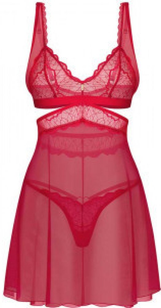 Vneste vášeň do každého okamžiku s touto výraznou červenou košilkou a tangy, které spojují smyslnost s elegantním stylem. Košilka je ušita z jemné, průhledné látky zdobená propracovanou krajkou. Tento model dokonale spojuje půvab s rafinovaností. Hluboký výstřih a odhalené detaily pod prsy podtrhují ženské křivky, zatímco nastavitelná ramínka a vícestupňové zapínání zajišťují perfektní pohodlí a p...
