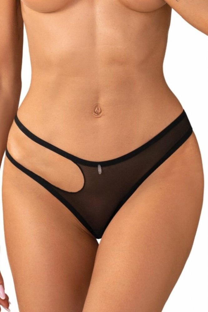 Tanga Saturis jsou smyslným doplňkem pro ženy, které chtějí spojit eleganci a odvážnou svůdnost. Jemná síťovina decentně odhaluje tělo, rafinovaný střih s otevřeným klínem probouzí fantazii. Dvojité pásky na bocích podtrhují linii boků a opticky prodlužují nohy. Stříbrný přívěsek vpředu dodává prádlu nádech luxusu a jemného lesku. Díky elastickému materiálu se model perfektně přizpůsobí křivkám a zajistí komfort i při intenzivních chvílích. Ideální volba pro sebevědomé ženy, které se chtějí cítit přitažlivě a neodolatelně.