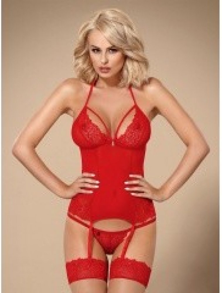 Smyslný korzet v teplé červené barvě, která perfektně ladí k Vašemu tělu. Návrh nejen na Valentýna. Korzet byl šitý z měkkého, elastického tylu s jemnou síťovinou, která se dokonale přizpůsobí tělu, s důrazem na ženské vlastnosti. Košíčky bez kostice, zdobené pásky a šperkem. Zadní strana je odkryta - korzet je po celé zadní délce na šněrování, zavazování za krkem. Sexy tanga získáte zdarma pro te...