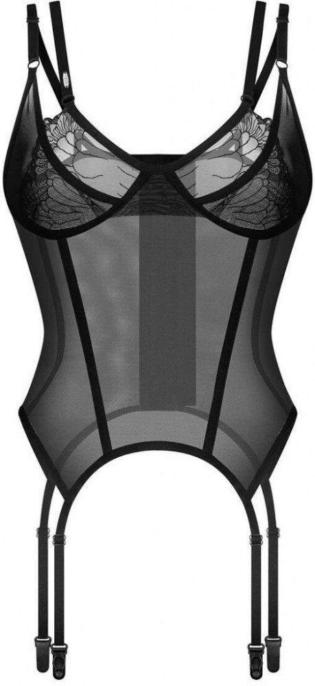 Průhledná látka obepíná vaše tělo a svůdně vystavuje své půvaby. Jemné krajkové vsadky, korzetové šněrování a podvazkové pásky z vás udělají střed pozornosti. Zdůrazněte svou krásu jedinečným způsobem a připravte se na zcela novou úroveň zážitků z rozkoše!
