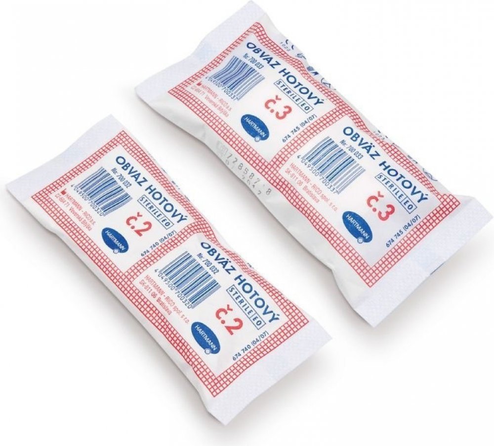Obvaz hotový sterilní Hartmann slouží k poskytnutí první předlékařské pomoci při zranění. Za pomoci kompresu se snižuje krvácení, samotný obvaz se používá k obvázání rány a upevnění dalších kompresů. Hotový obvaz se skládá z hydrofilního obinadla a připevněného kompresu (Zetuvit E). Sterilní. Obsahuje 67 % bavlny a 33 % viskózové střiže.