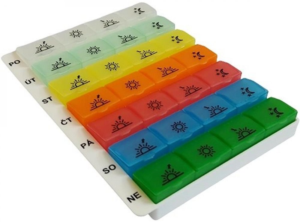 Tento týdenní dávkovač léků slouží k přehlednému a spolehlivému ukládání a především dávkování léků doma i na cestách. Tento typ vhodně doplňuje řadu týdenních dávkovačů a umožňuje uložení většího počtu léků nebo potravinových doplňků do samostatně otevíratelných přihrádek. Každý den se skládá ze 4 částí, které lze použít např. k dávkování ráno, v poledne, večer a v noci. Tyto jednotlivé přihrádky jsou označeny symboly části dne (potisk je černou dobře viditelnou barvou). Oddíly pro jednotlivé dny se dají z kazety vyjmout, takže je lze vzít samostatně do zaměstnání či na jednodenní cestu. Barevné víčko se snadno otevírá, zatímco ostatní dávky léků zůstávají pečlivě uzavřeny. Kazeta je opatřena znakovým odlišením pro zrakově postižené. Jednotlivé části (dny) lze nejen vyjmout, ale také dokoupit jako denní dávkovač léků.