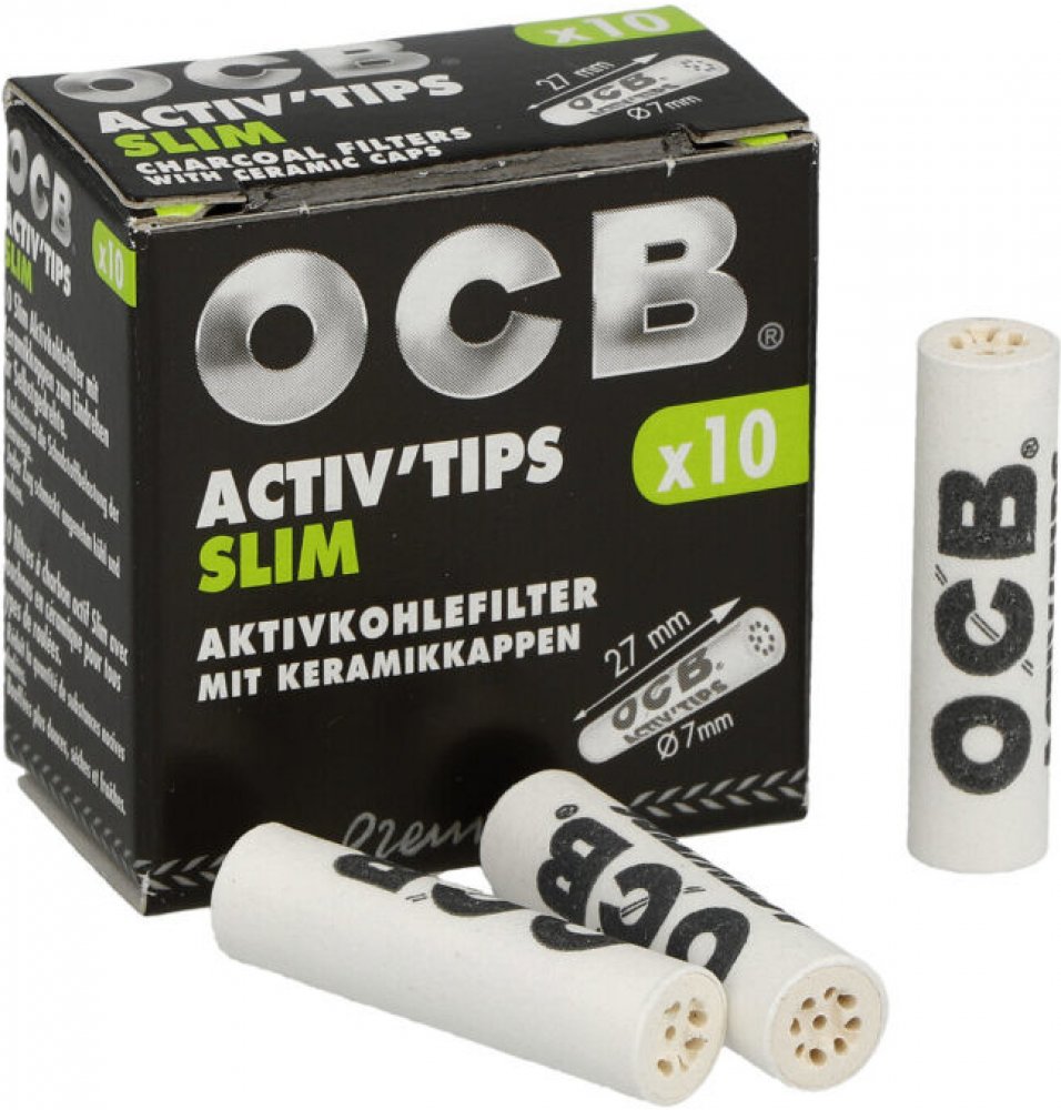Cigaretové filtry OCB Activ Tips Slim s aktivním uhlím a keramickým oboustranným zakončením. Uhlíkové filtry snižují množství přijímaného dehtu, neovlivňují chuť a dopřejí Vám suché a chladné kouření. Průměr filtru 7mm, délka 27mm. Cena uvedena za 1 balení (10 ks filtrů).