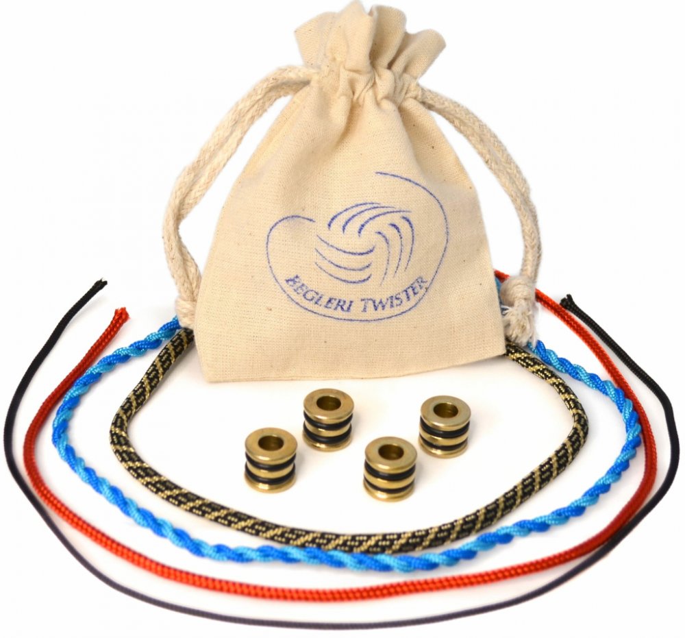 Na obou koncích tohoto begleri jsou 2 miniaturní beady (2x5g) z chirurgické oceli. Poctivá povrchová úprava zajišťuje zachování prestižního vzhledu i při intenzivní hře a pádech na tvrdý povrch. Jsou čiperné a poddajně reagují na podněty. Zakončení je provedeno buď bez uzlu, zatavením provazu, nebo různými uzly, které mohou být doplněny o třásně. Tímto si begleri přizpůsobujete nejen esteticky, ale zároveň i funkčně - ve variantě "bez uzlu" je jeden konec begleri (finální bead) 22 mm vysoký a váží cca 10,5 g. S velkým ozdobným uzlem dostaneme bead o výšce asi 30 mm a váze asi 11,4 g, záleží na staženosti uzlu. Pro měření byl použit paracord 550 (4 mm).