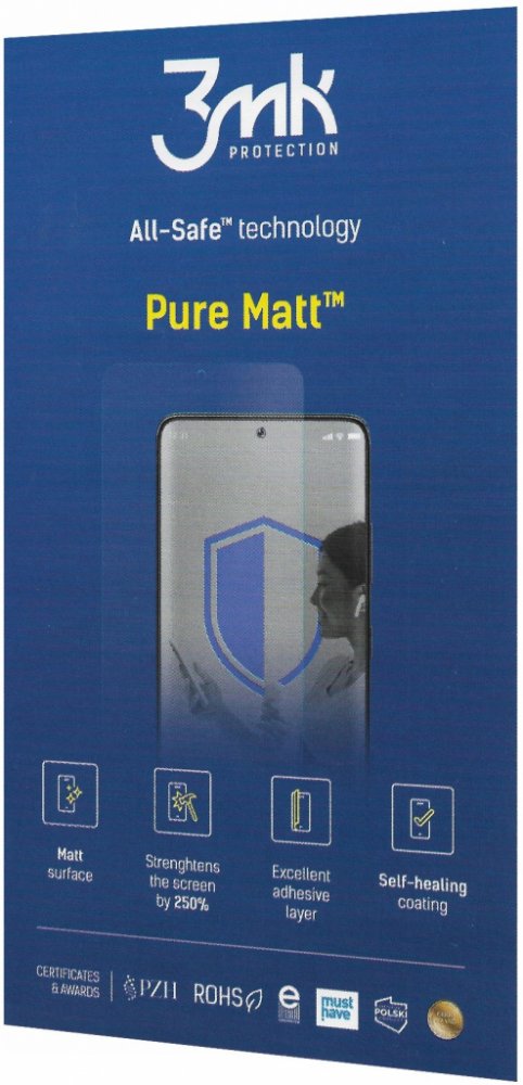 Instalace probíhá na mokro za pomoci bezpečného gelu, který je součástí balení. Výhodou je především nižší riziko vzniku vzduchových bublin a zachycení prachovývh částic nebo možnost s fólií před finálním umístěním libovolně pohybovat. Přítomnost oleofóbní vrstvy zaručuje plynulý pohyb po displeji a zabraňuje ulpívání otisků prstů. Prodlouženou životnost výrobku zajišťuje technologie Self-Heal, která dokáže efektivně zacelit menší šrámy, čímž značně snižuje riziko případné výměny.