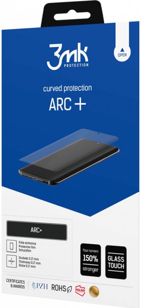 Fólie 3mk ARC + je navržená pro mobilní telefony se zaobleným displejem. Fólie tak chrání...