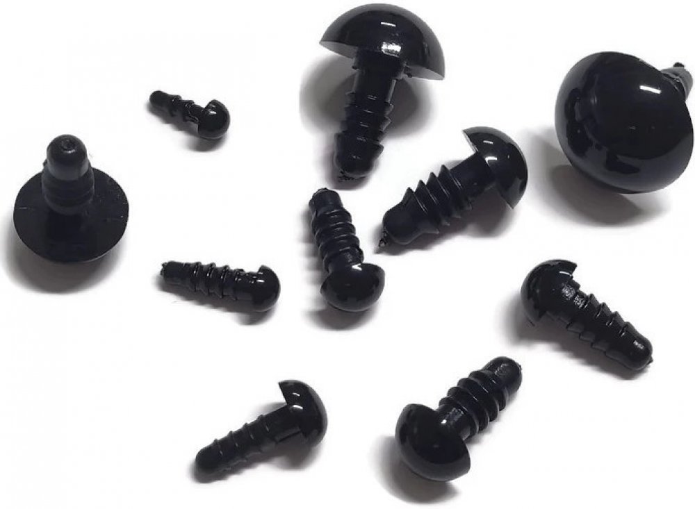 Plastové bezpečnostní oči v černé barvě se používají při výrobě háčkovaných hraček (amigurumi).