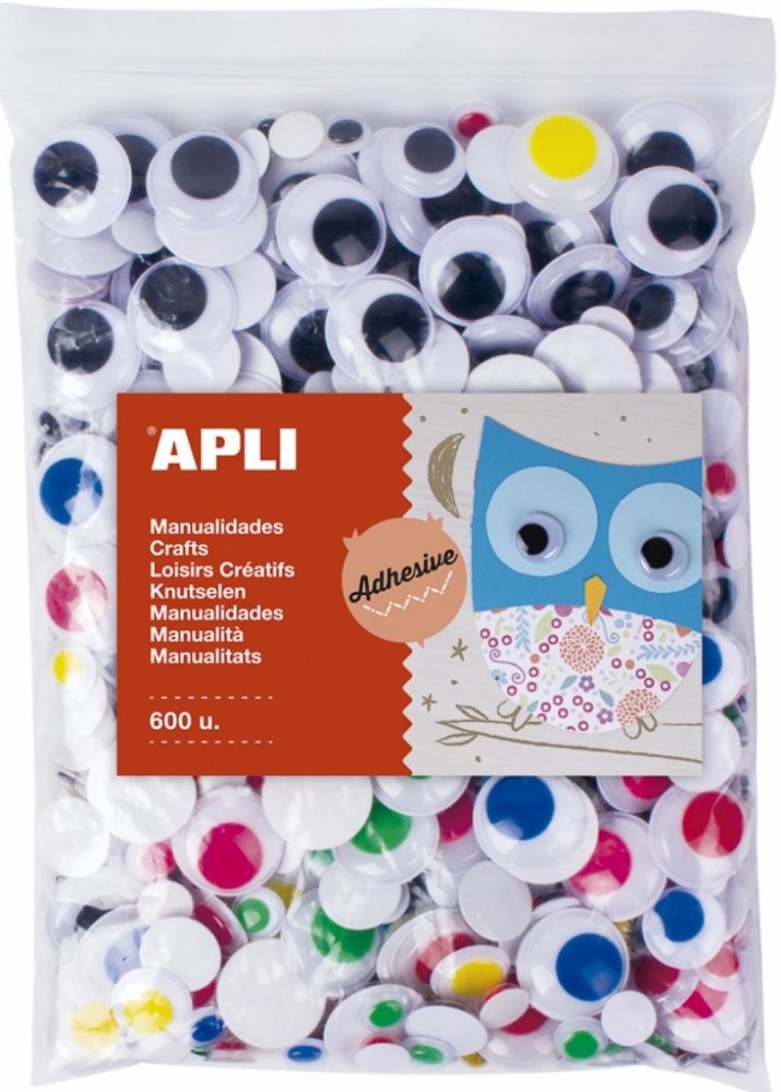 Kulatý tvar očí v mixu velikostí a barev: 300 ks černých, 150 ks barevných a 150 ks s očními řasami.