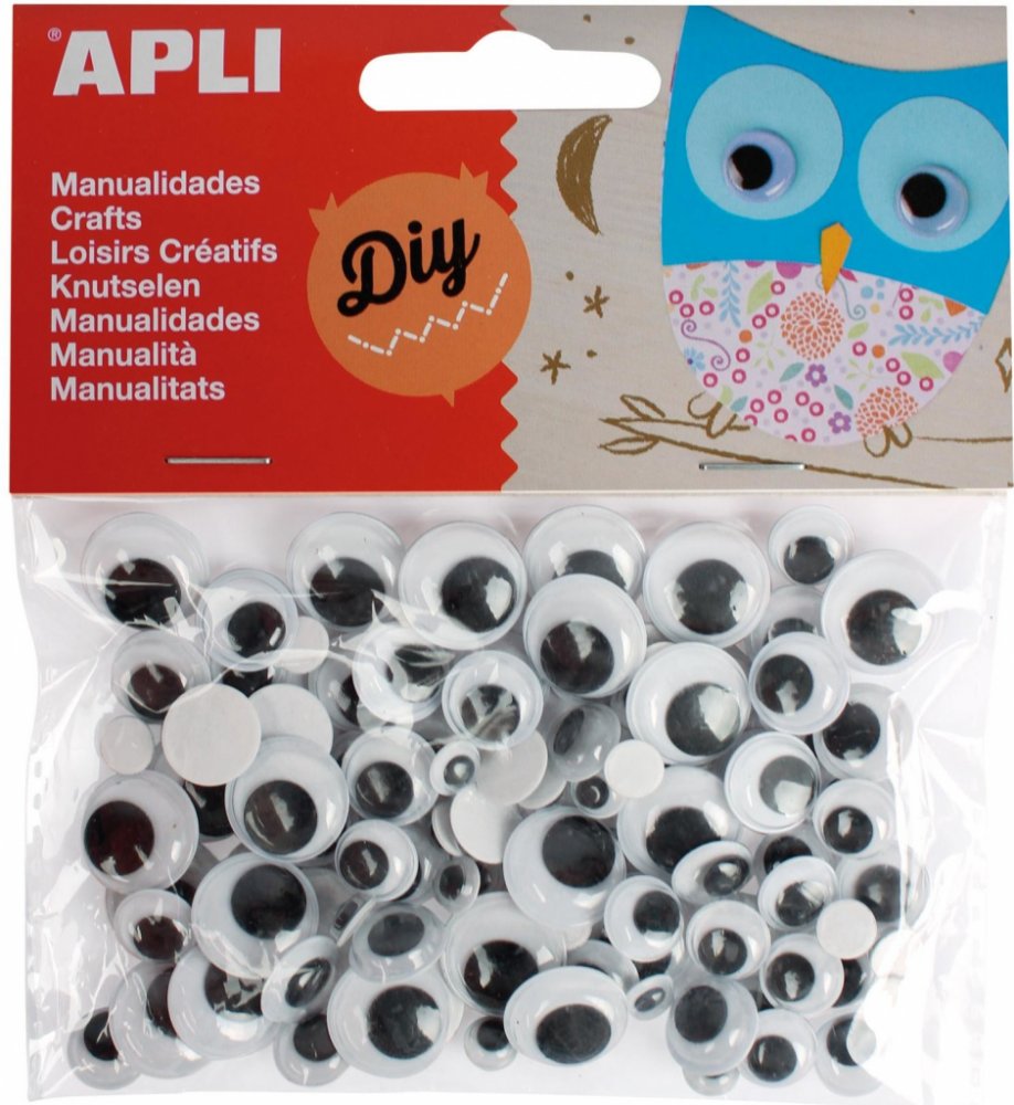 Oči s pohyblivou zorničkou - polotovar pro dotvoření obličejů. Určeno pro výrobu dekorací a pedagogické aktivity.