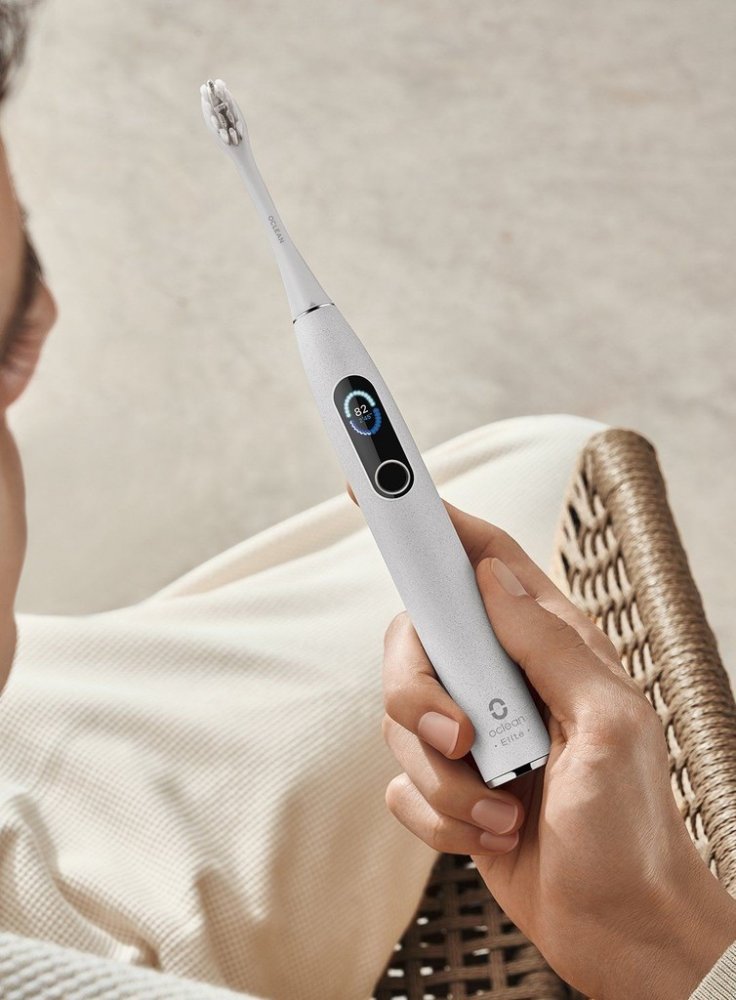 Špičkový chytrý sonický kartáček X Pro Elite s 0,96palcovým barevným dotykovým displejem, magnetickým motorem, mobilní aplikací, jednoduchým ovládáním a dokonalou kombinací funkčnosti a designu. Unikátní 8zónová detekce nevyčištěných zón pomocí 6osého gyroskopu. Držitel ceny za nejinovativnější design pro svůj vzhled s dokonalou kombinací funkcí a krásou.