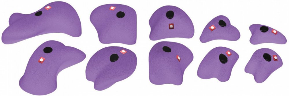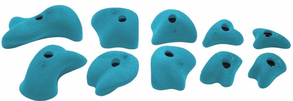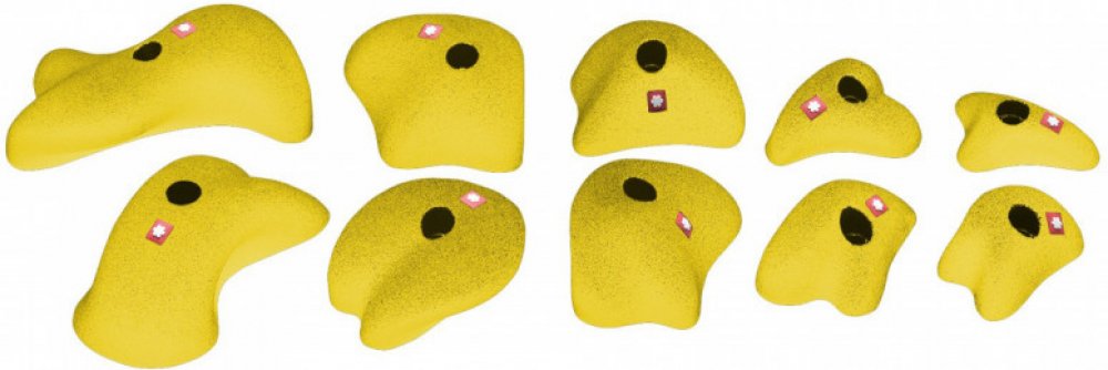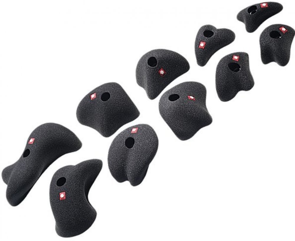 Lezecké chyty Ocún určené na umělé horolezecké stěny nebo bouldrové stěny. Balení obsahuje 10 různých chytů o velikostech dvakrát XS, dvakrát S, dvakrát M, dvakrát L a dvakrát XL. Lezecké chyty Ocún mají anatomický tvar, díky čemuž nejsou agresivní vůči vaší kůži a prstům. Díky použitému materiálu jsou chyty i velice lehké.